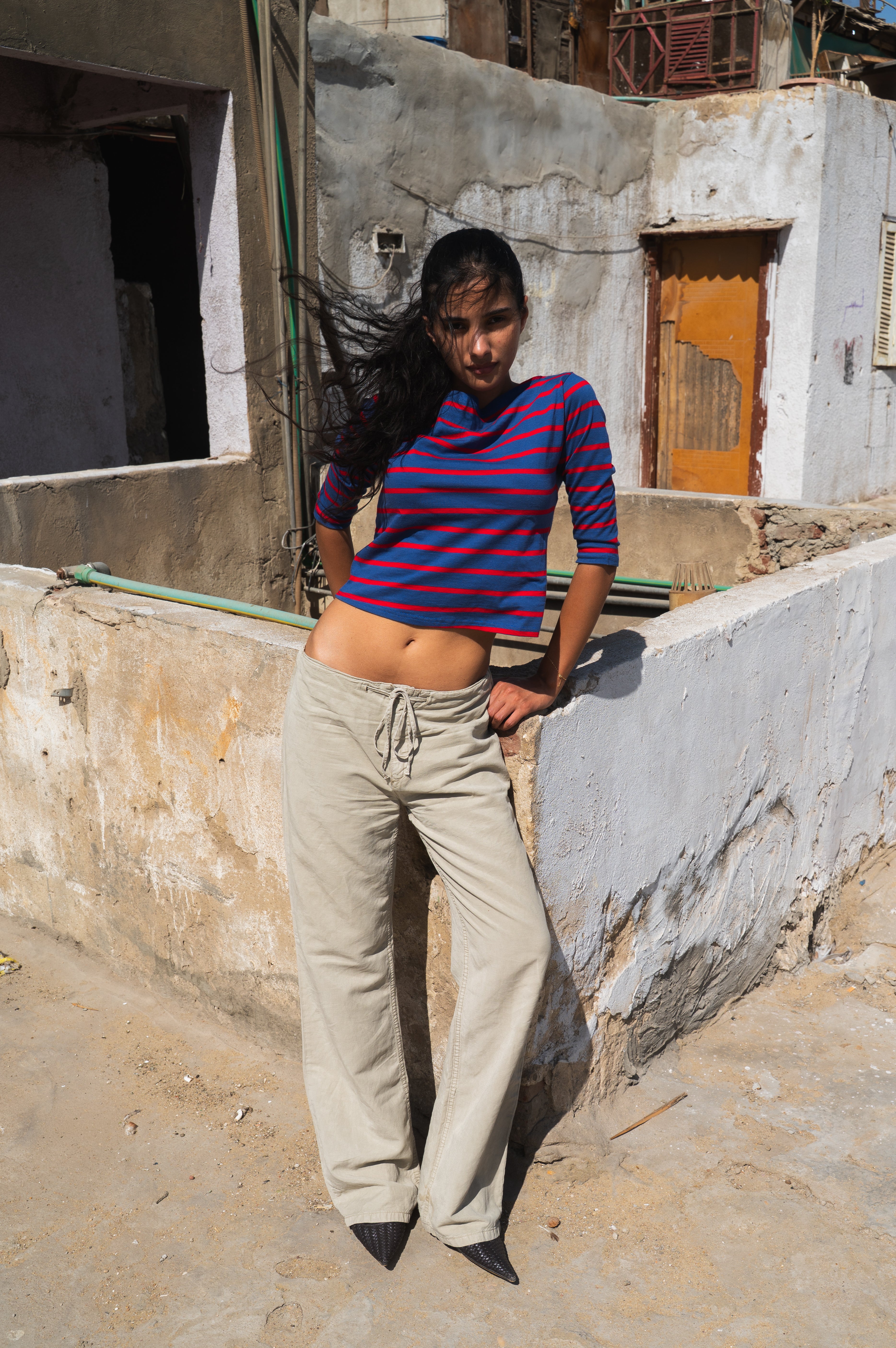 fit: top with a boat neckline and three-quarter sleeves. made from lightweight cotton with a slightly fitted shape.