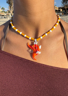 glass beaded chain with a glass starfish pendant.